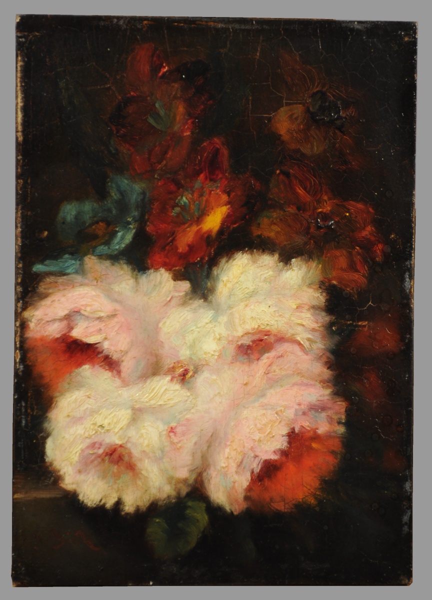 Narcisse DIAZ (1807-1876) Bouquet de pivoines.Huile sur panneau signée en...