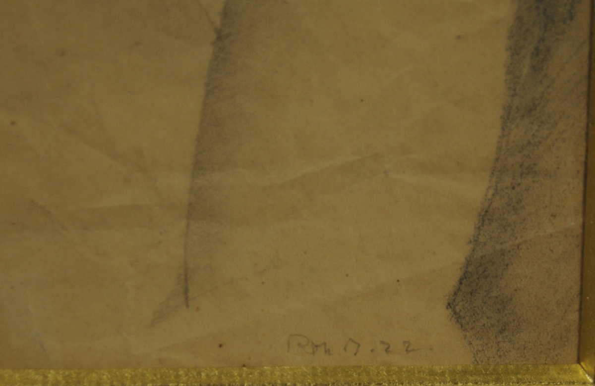 Graphite et estompe sur papier froissé. Signé R Th B. en bas à droite et daté 22.