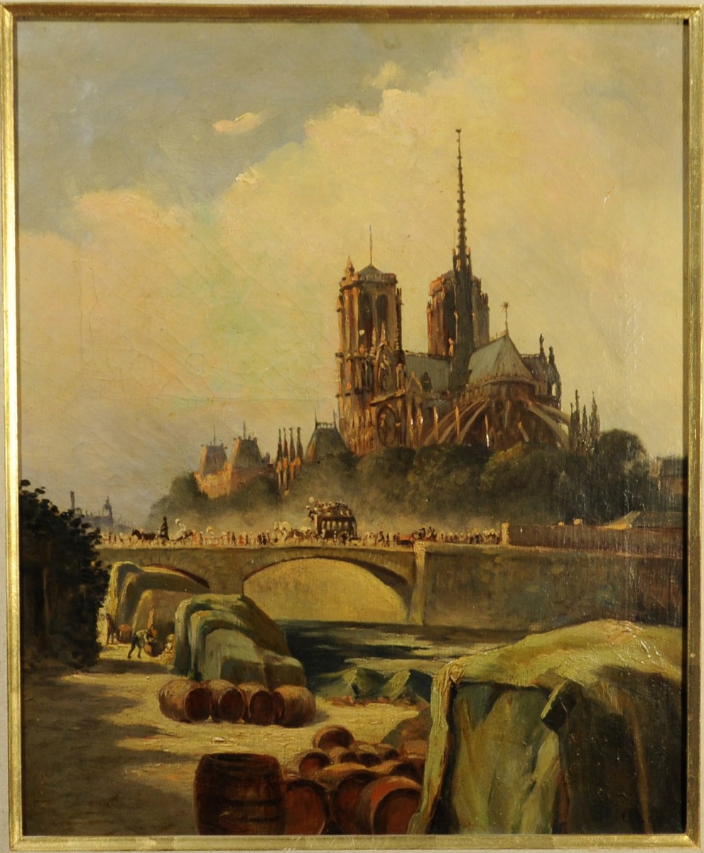 Vue animée du pont de l'Archevêché et du chevet de Notre-Dame.