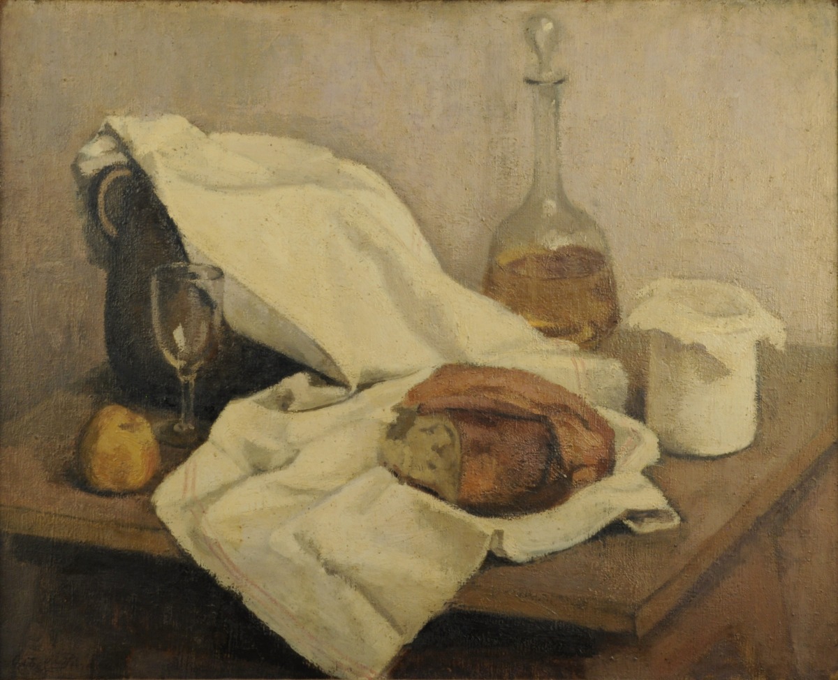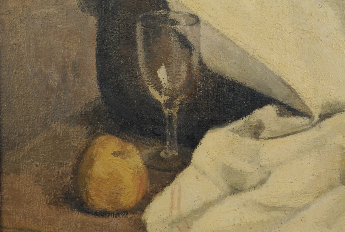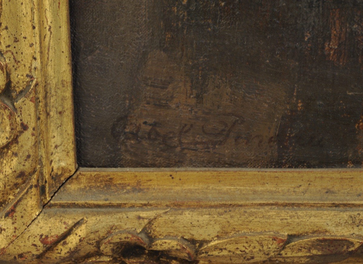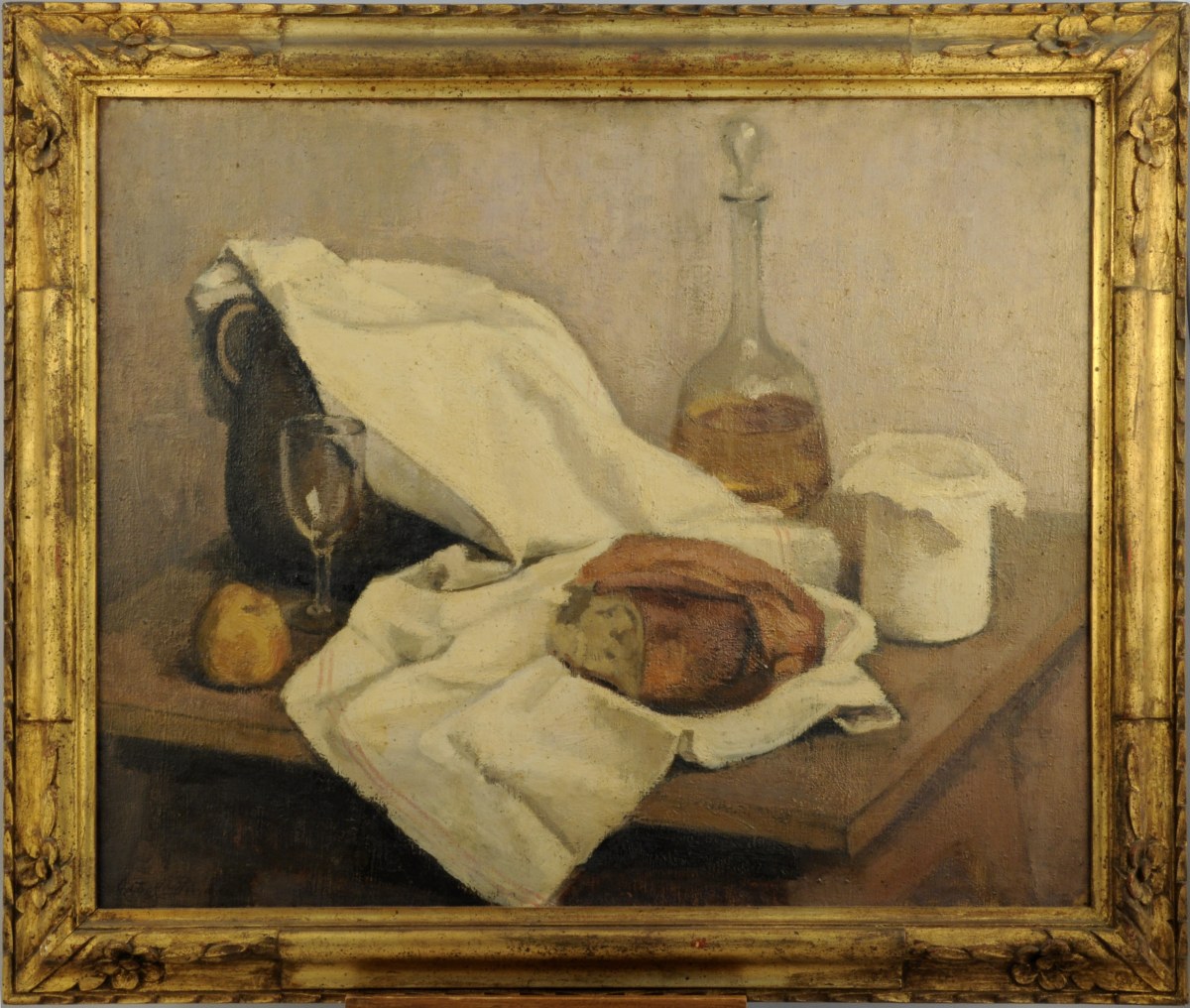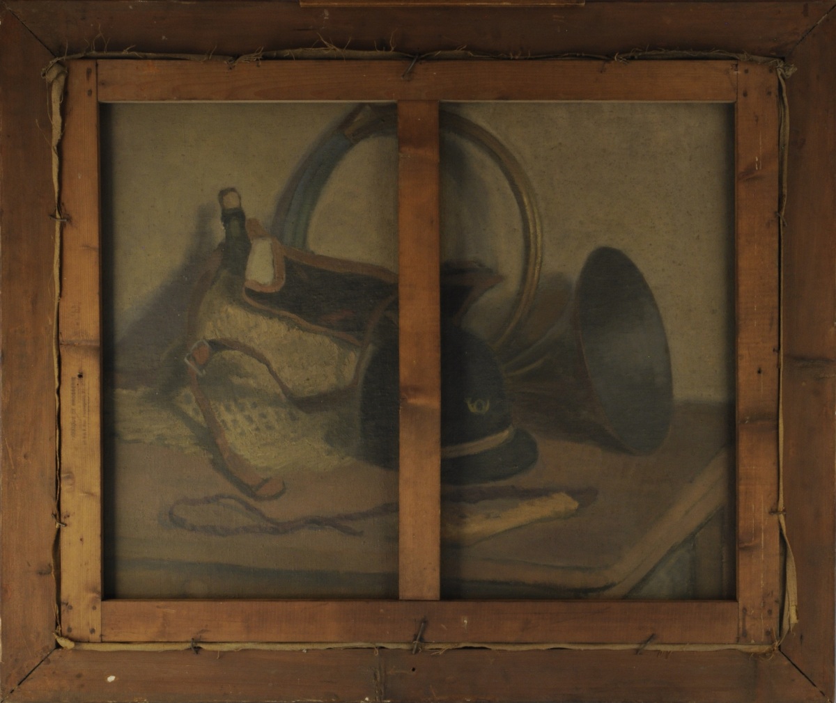 Toile signée en bas à gauche. Une nature morte à la trompe de chasse au verso.