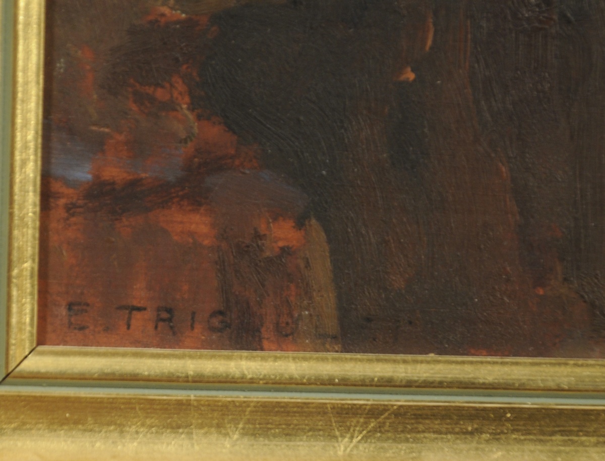 Huile sur panneau de bois, non signée . Tampon de l'Atelier Trigoulet au dos.
