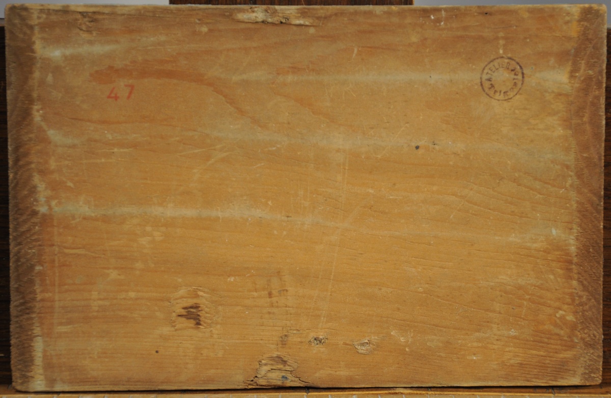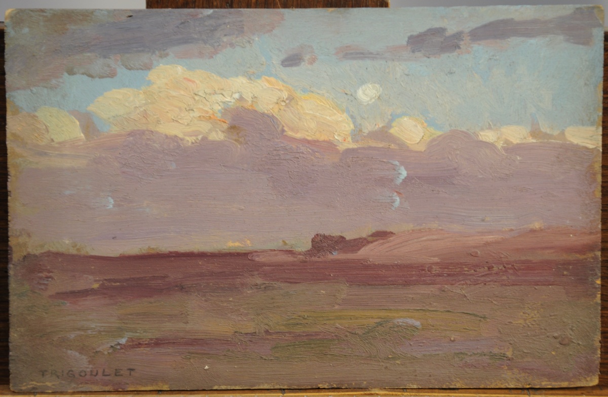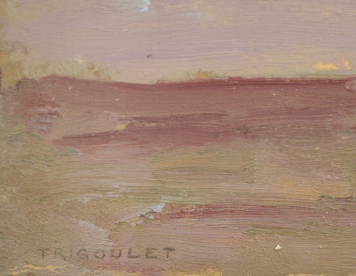 Huile sur panneau de bois, signée en bas à gauche. Tampon de l'Atelier Trigoulet au dos.