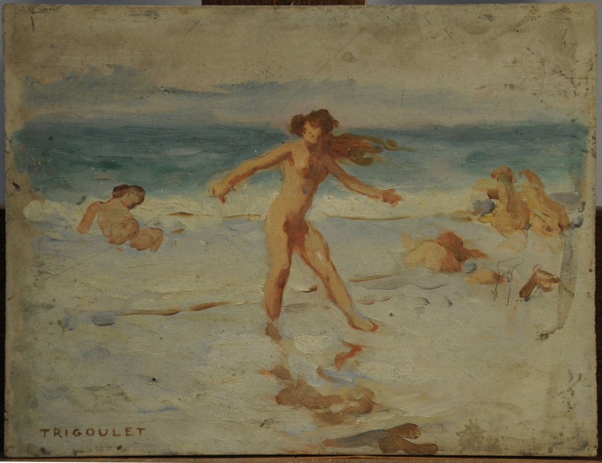 TRIGOULET.Naïades.Huile sur panneau de bois, signée en bas à gauche.26,5...