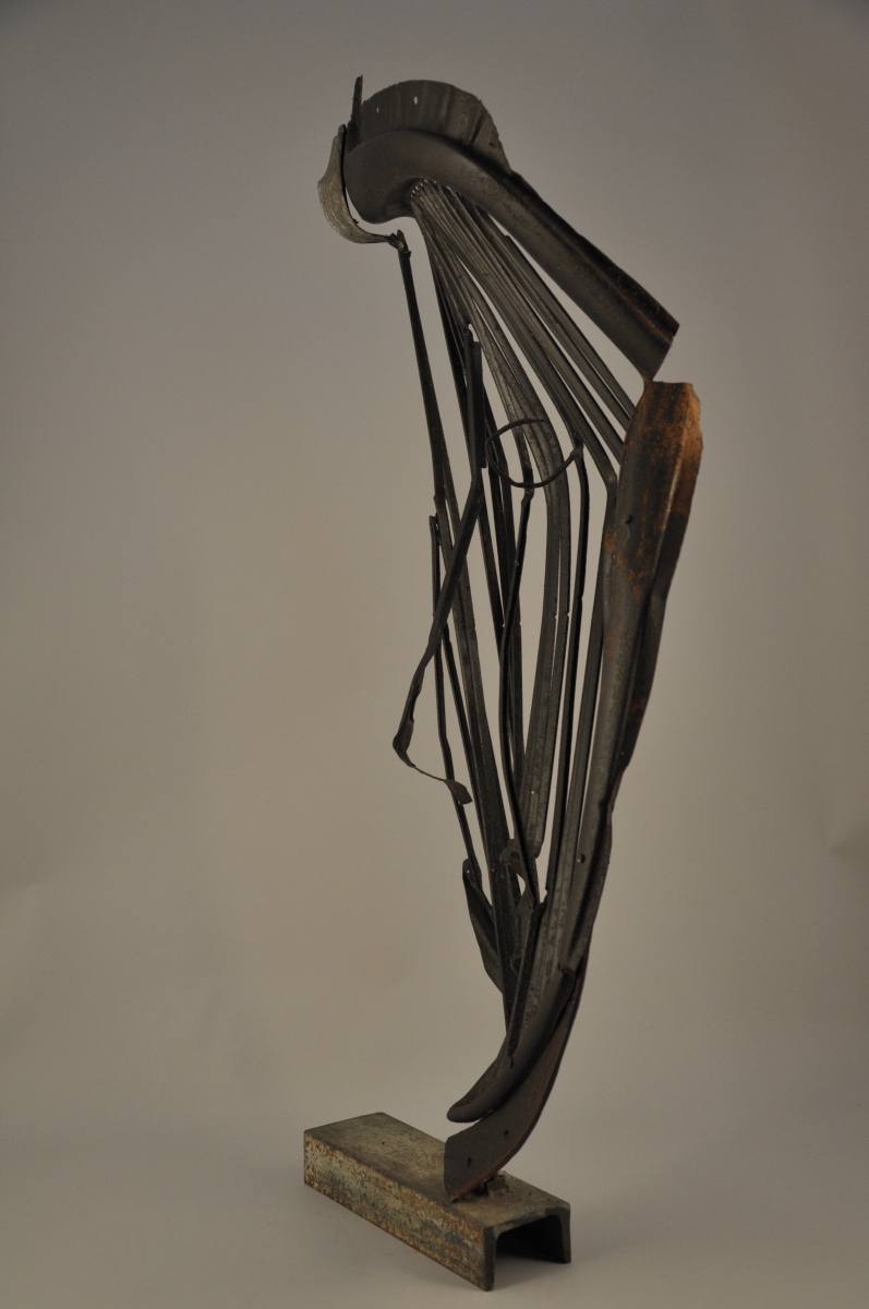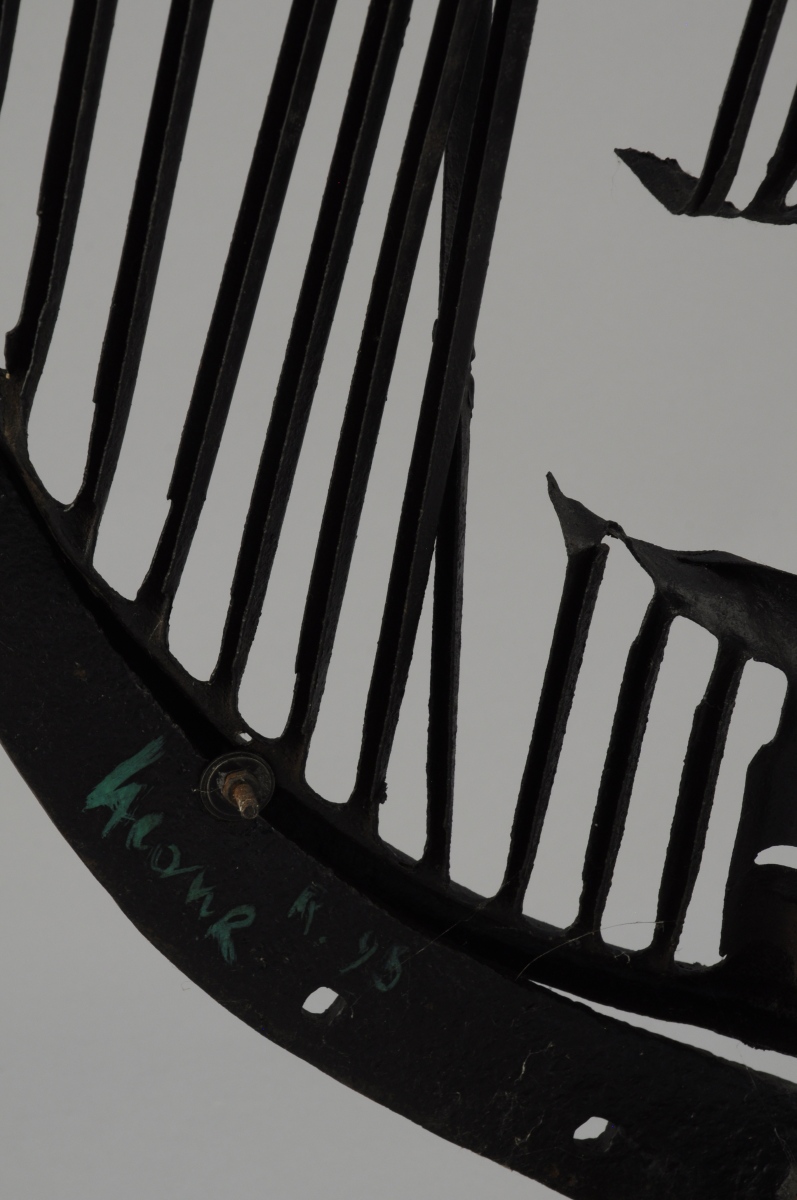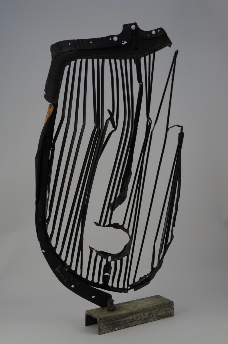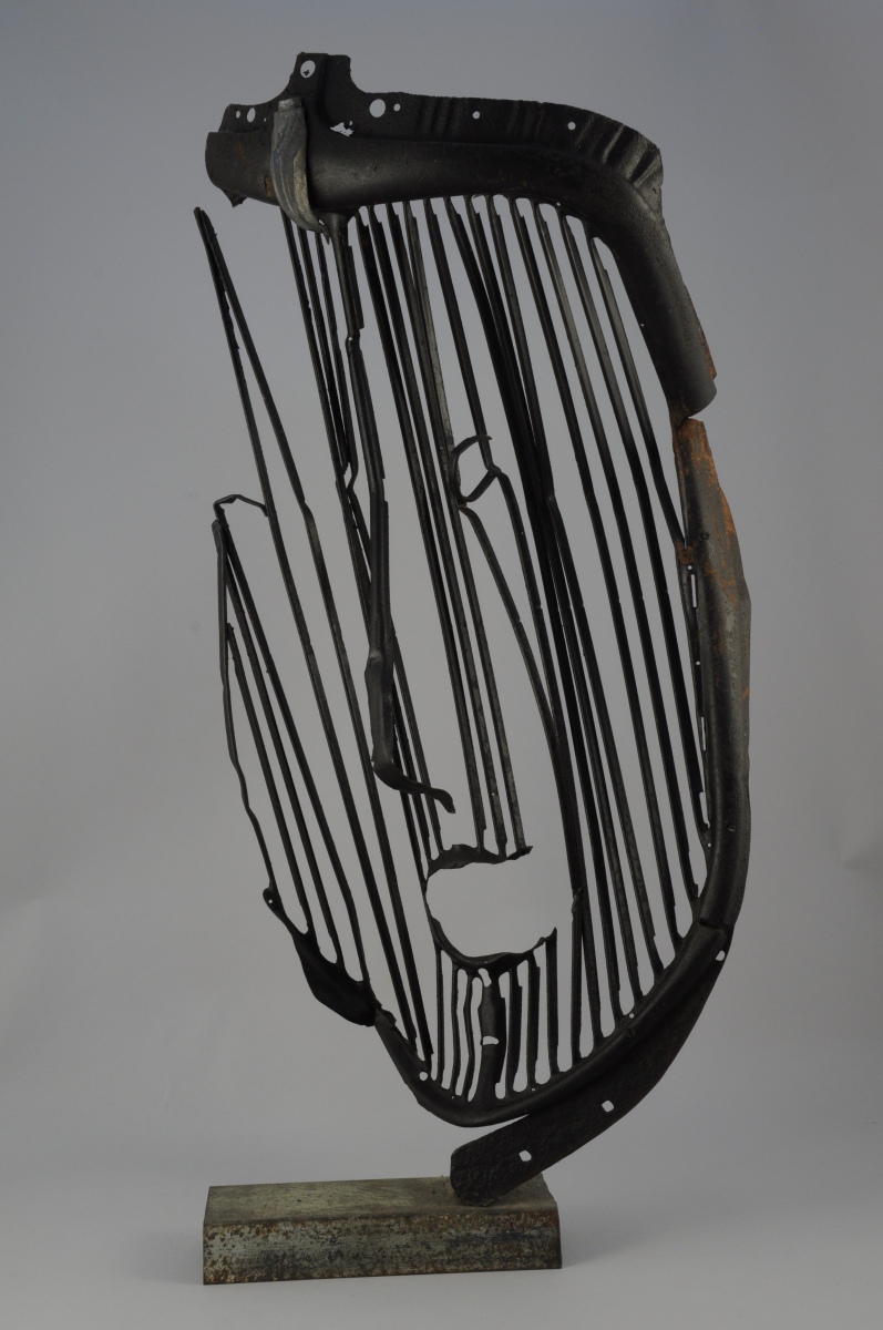 Sculpture en acier et fer à partir d'une calandre. Signée et datée 95.