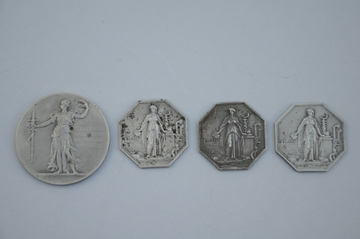BANQUE. LOT de QUATRE MÉDAILLES et JETONS en argent comprenant: