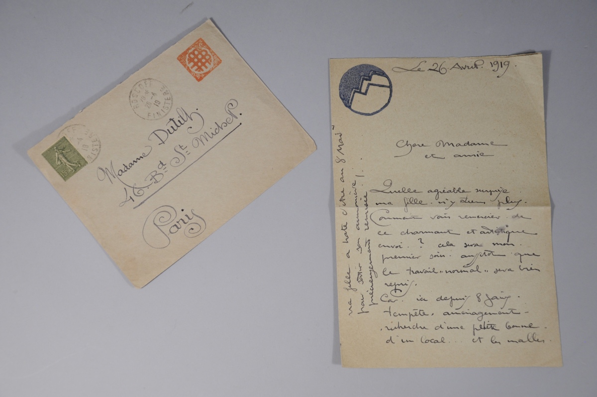 L.A.S., monogrammée, datée du 26 avril 1919 et située à Roscoff, à Madame Jeanne Dutilh, 2 pages, 19.4 x 27.5 cm, 2 pages, une enveloppe.