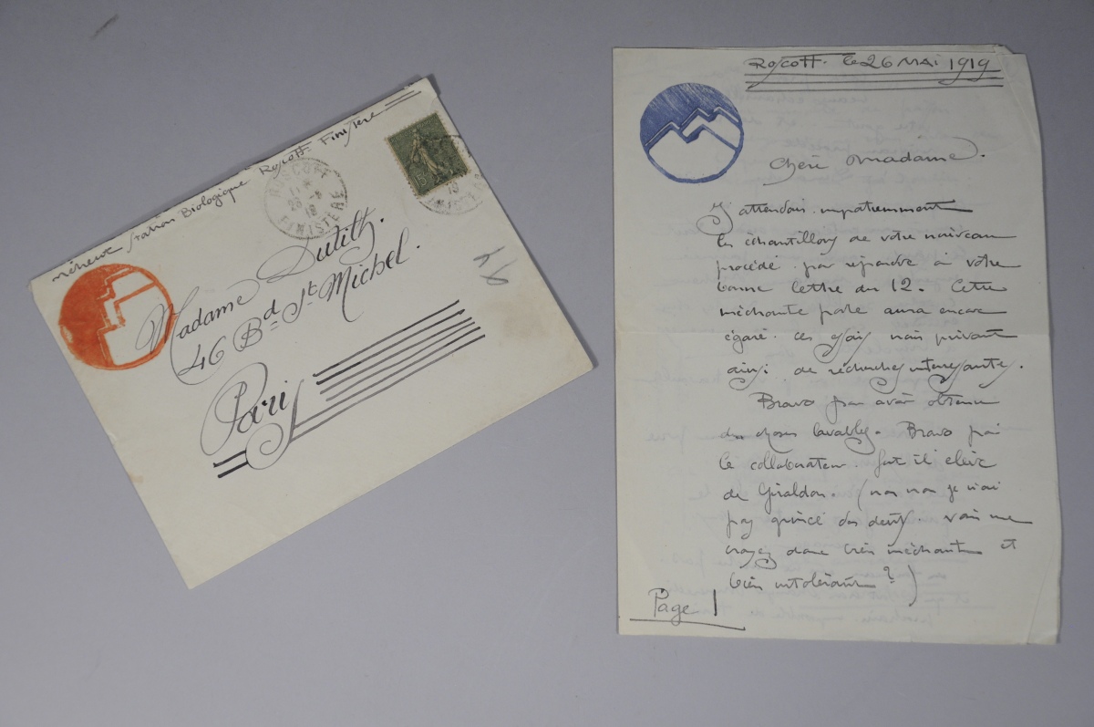 L.A.S., monogrammée, à Roscoff, 26 mai 1919, à Madame Jeanne Dutilh, 4 pages, 19.9 x 26.8 cm, une enveloppe.