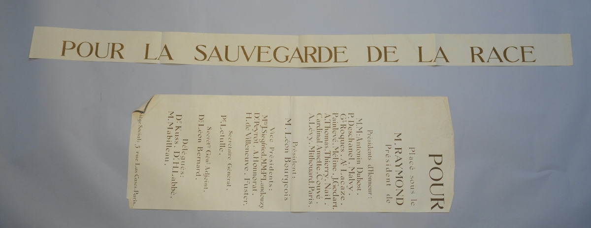 - Une banderole "Pour la Sauvegarde de la Race"