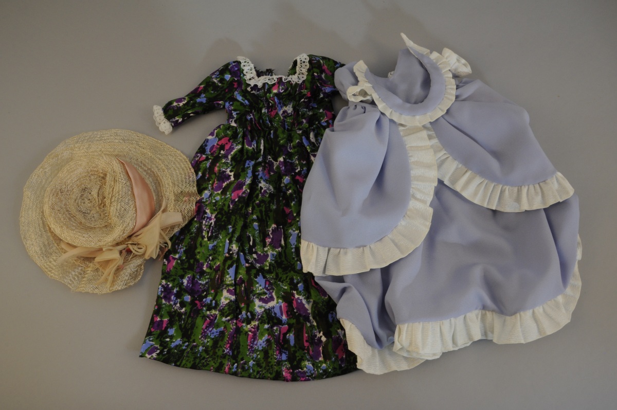 POUPÉE articulée. Tête en porcelaine en porcelaine marquée "SFBJ / 230 / Paris", yeux foncés ouvrants, bouche fermée. Cheveux blonds. Corps articulé en carton. Avec son trousseau de trois robes modernes et un support. XIX-XXe. Haut. 32 cm.