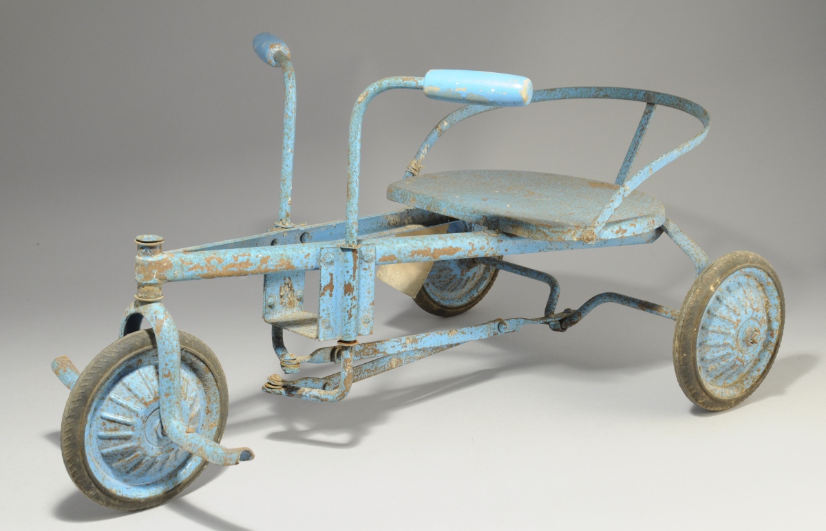 CYCLO-RAMEUR, "Baby Rameur" en métal laqué bleu. Poignées en bois laqué bleu.