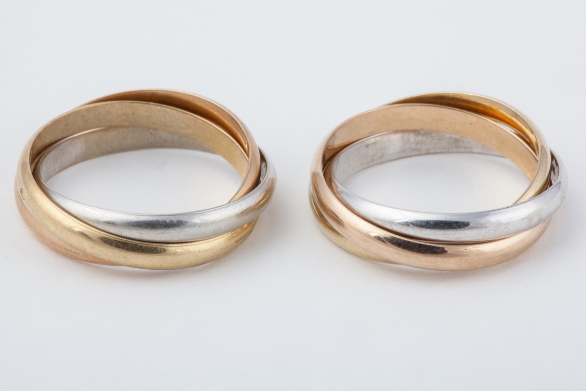 2 BAGUES TROIS ORS en or jaune, rose et blanc.