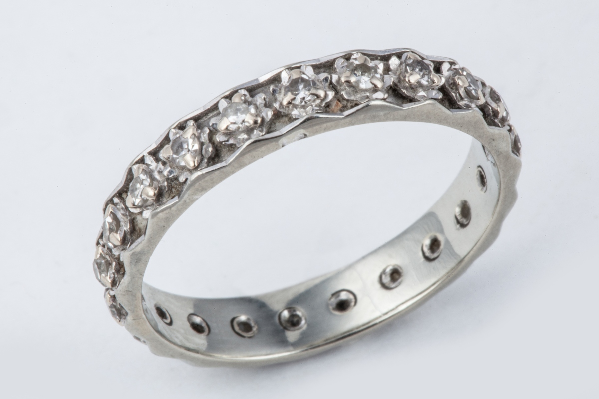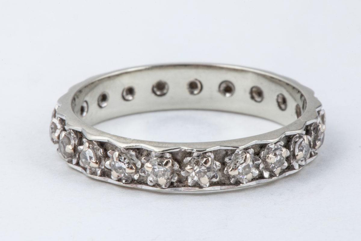 ALLIANCE AMERICAINE en or blanc, ornée de 21 diamants. Tour de doigt: 57. Poids brut: 2,7 g.