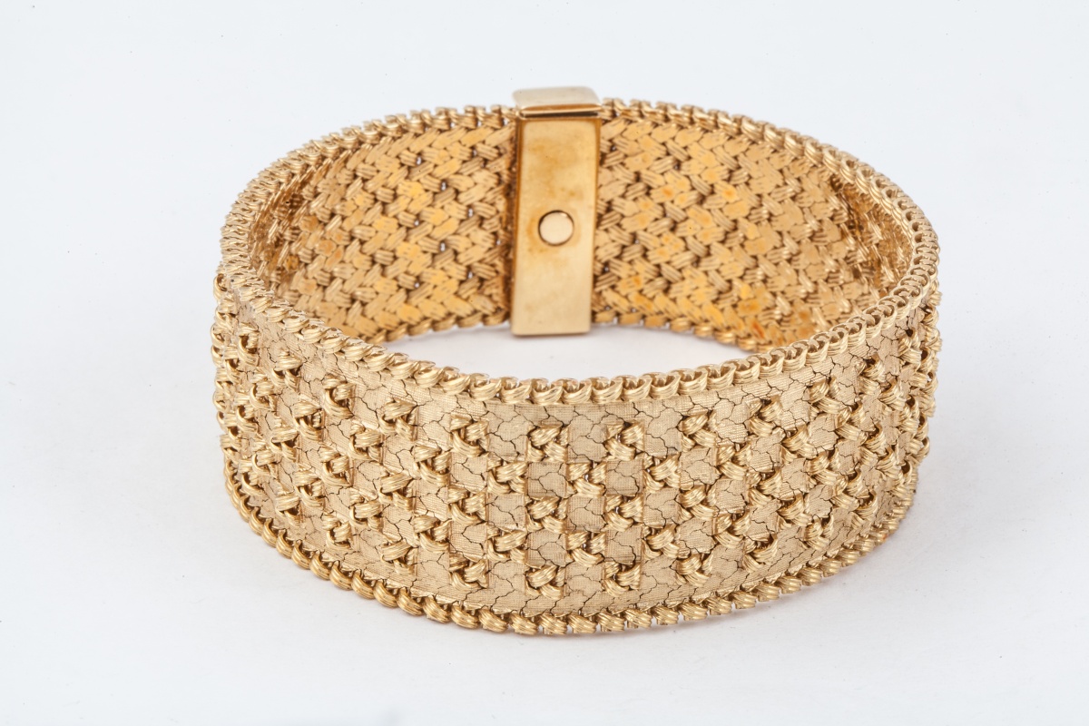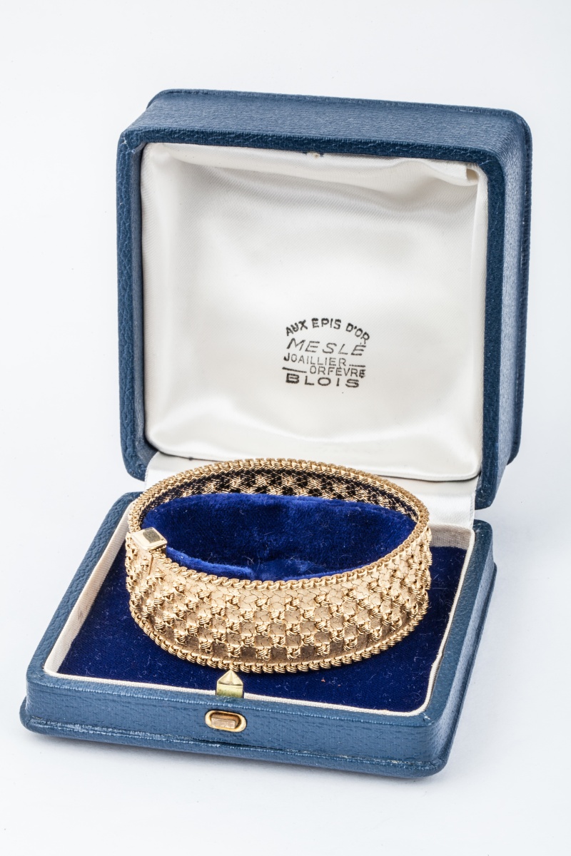 BRACELET ruban quadrillé en or mat et brillant. Travail de la maison Meslé à Blois
