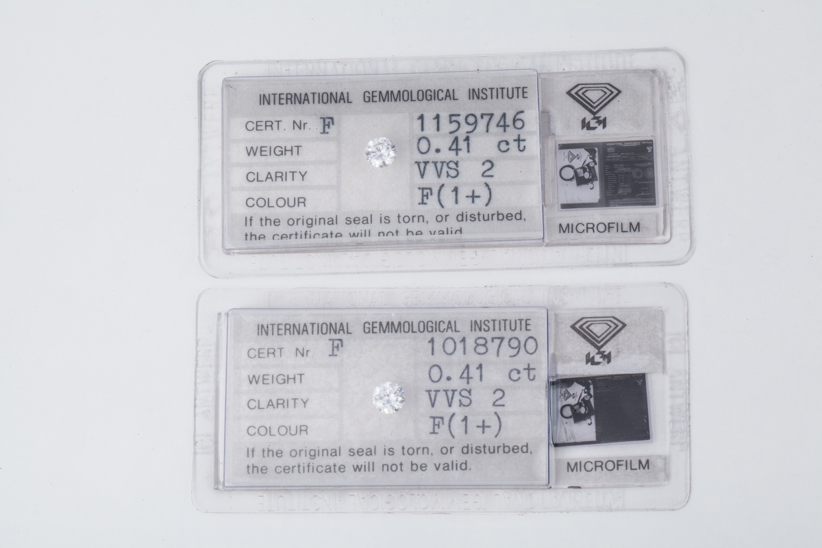 2 DIAMANTS taille brillant sur papier avec deux certificats de l'IGI.