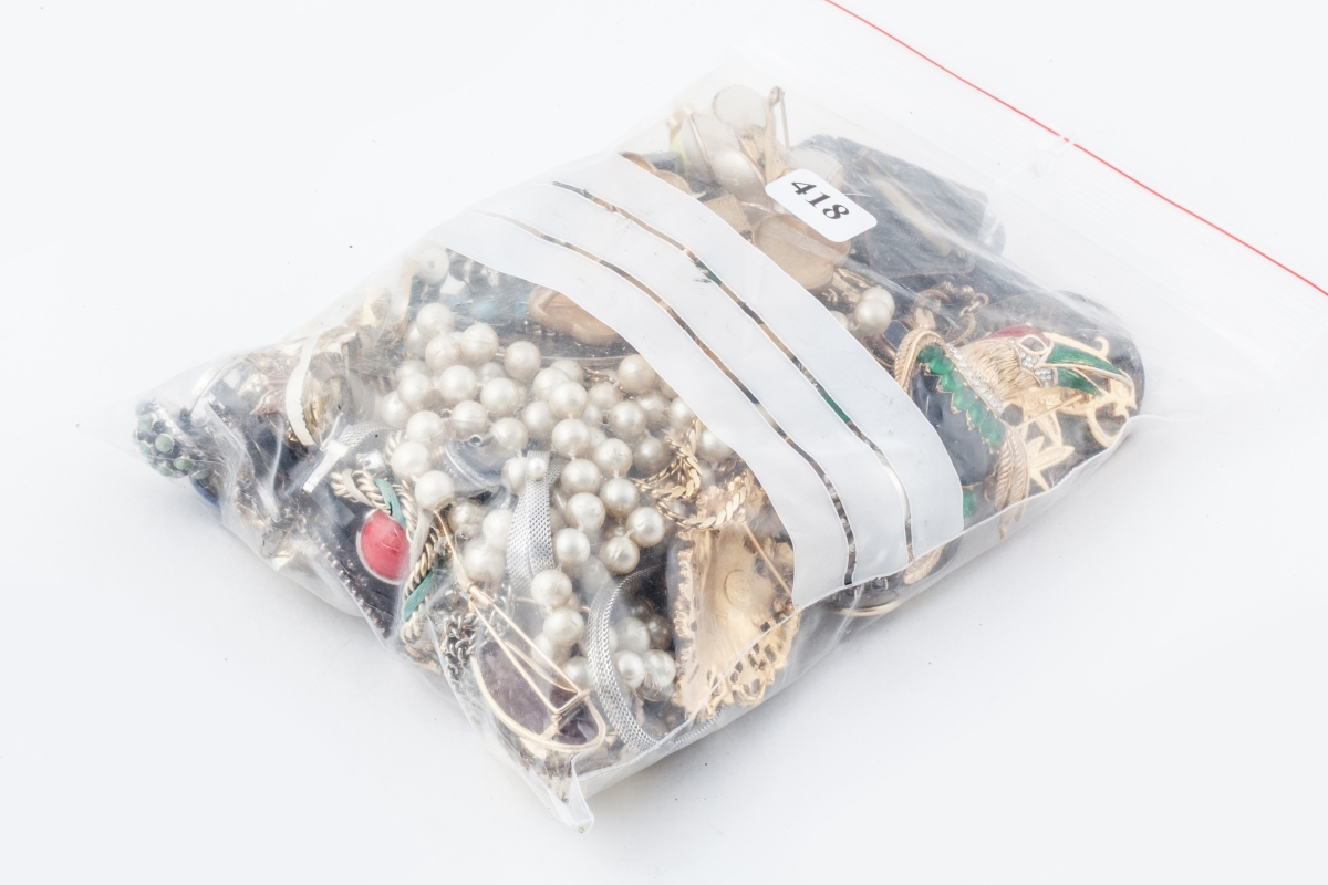 LOT DE BIJOUX FANTAISIES en métal et argent (?), orné de pierres de synthèse et pierres ornementales, comprenant: boucles d'oreilles, bagues, collier, broches, pendentifs.