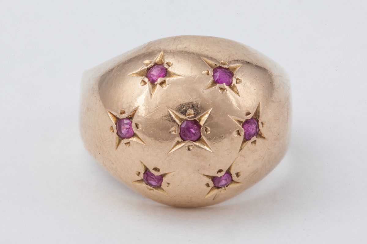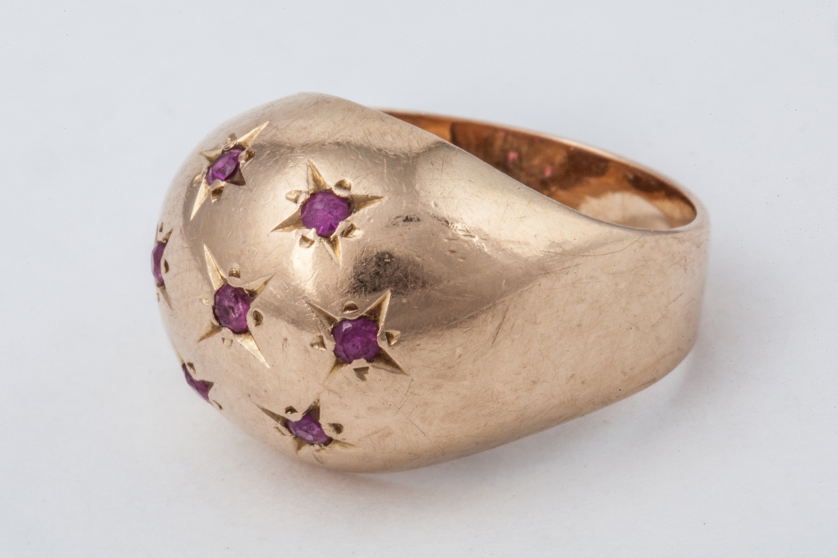 BAGUE BOULE en or jaune, incrustée de 7 topazes enchassées en étoile.