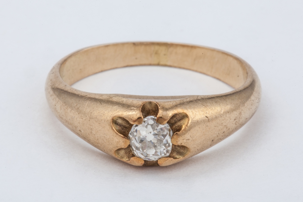 SOLITAIRE en or jaune orné d'un diamant de taille ancienne d'environ 0,2 carats.