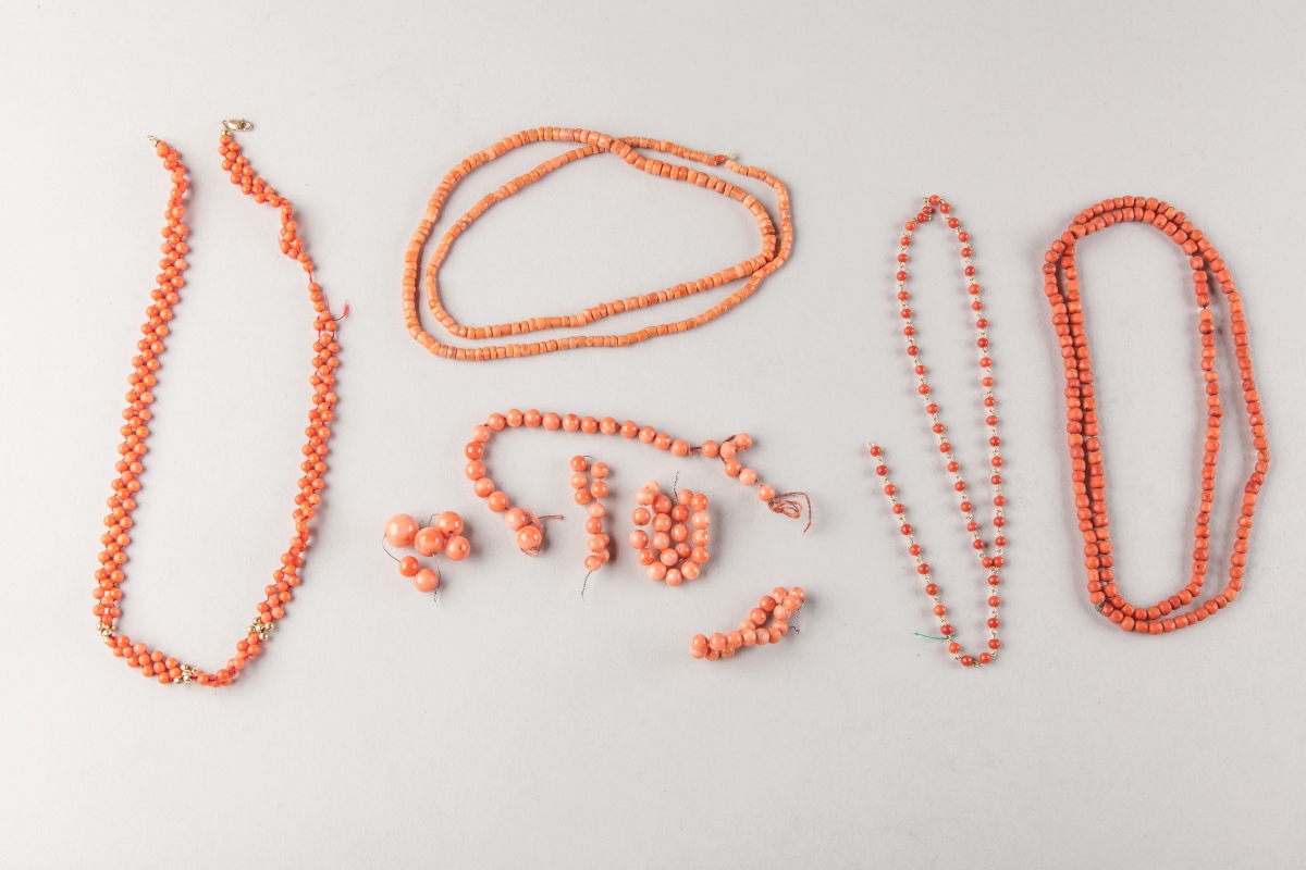LOT comprenant COLLIERS, BOULES et ELEMENTS de colliers en corail.