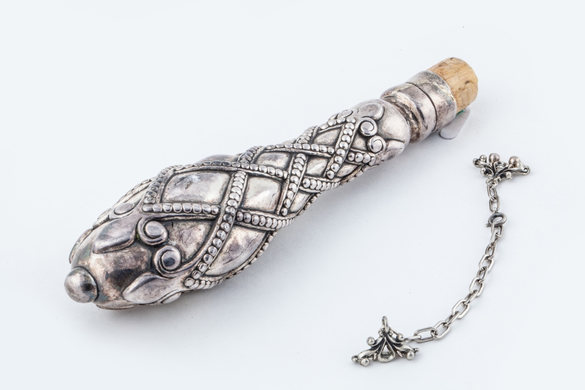 MANCHE D'OMBRELLE en argent à décor géométrique.