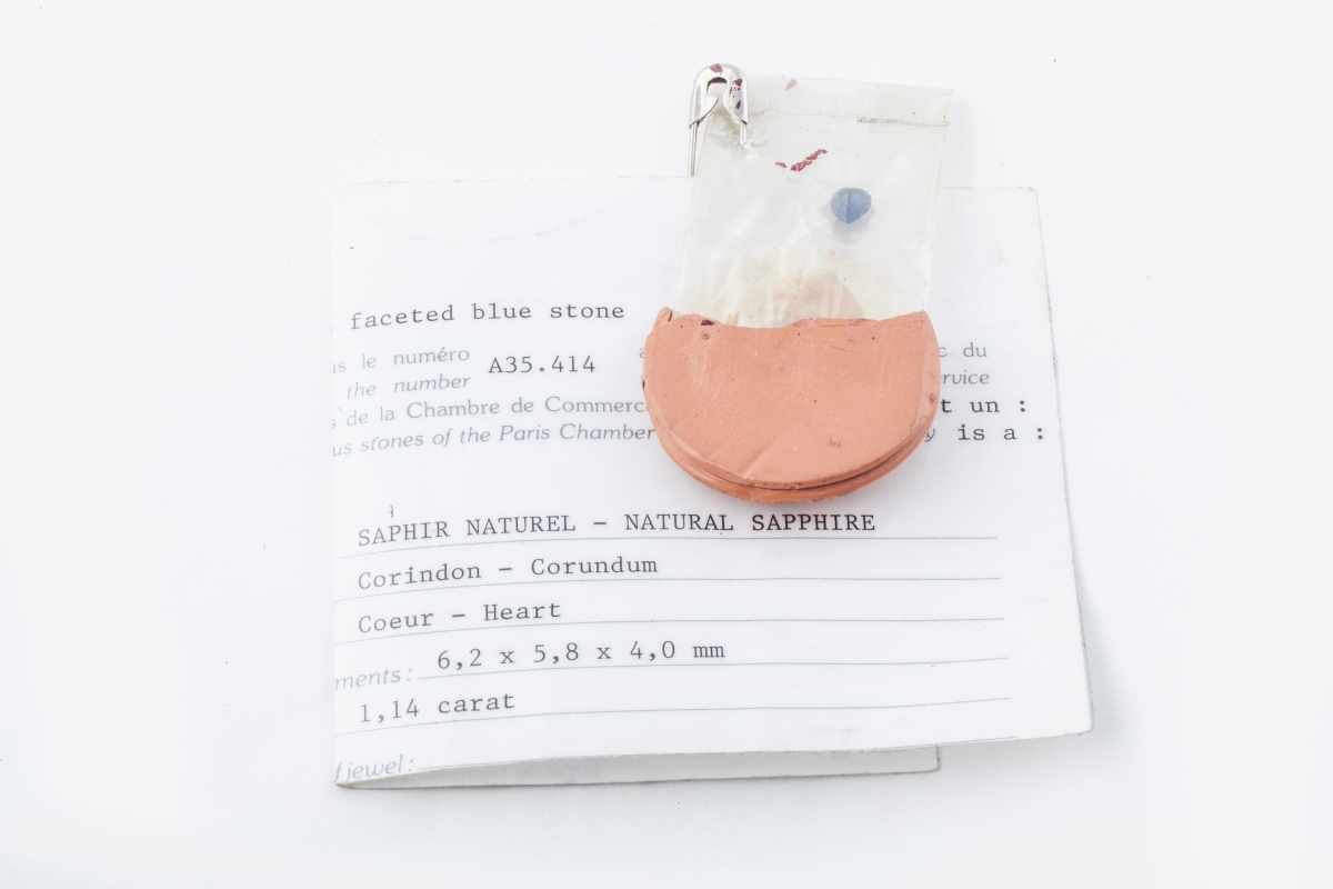 SAPHIR de forme coeur, sous scellé, accompagné d'une partie d'attestation du LFG précisant: