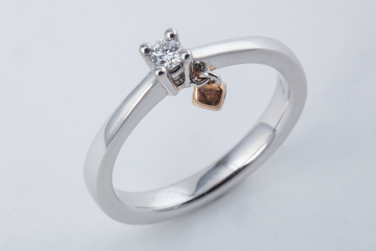 BAGUE en or gris, sertie d'un petit diamant solitaire de taille brillant.