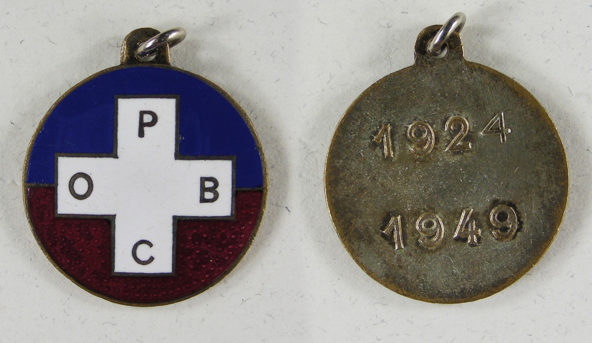 Russie - Émigration, JETON du 25e anniversaire de l'Union Générale des Associations des Anciens Combattants Russes en France, métal argenté et émaillé, au dos les dates 1924-1949.