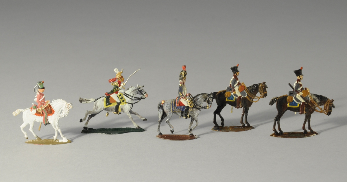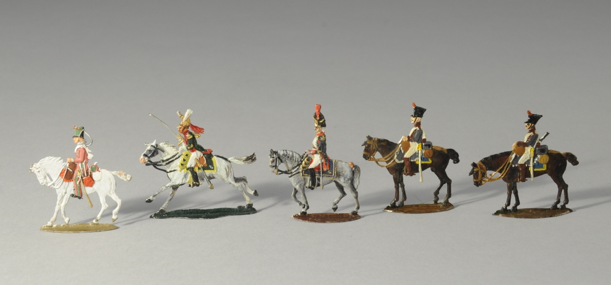 SOLDATS de PLOMB peints à la main. 16 pièces. Officiers à cheval et cavaliers de divers corps d'armée et pays.