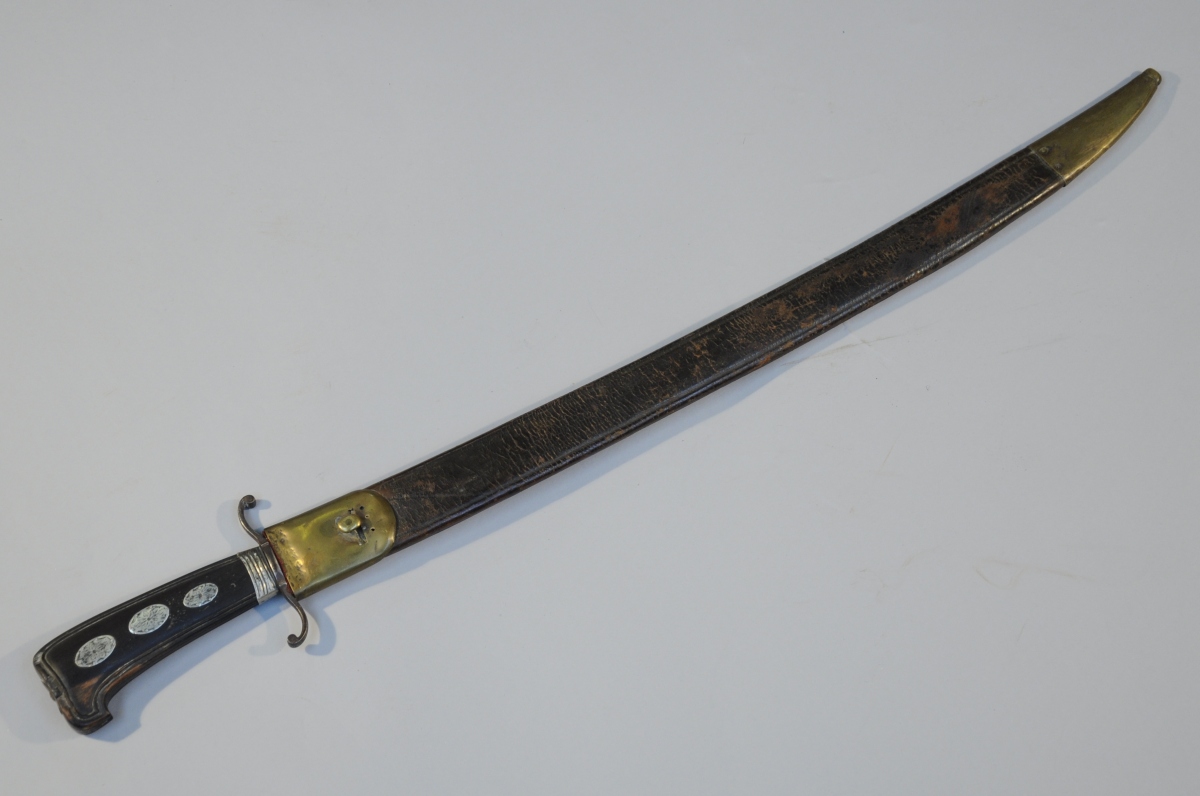 Fourreau en cuir noir à deux garnitures de laiton rapporté (restauration à la chappe).