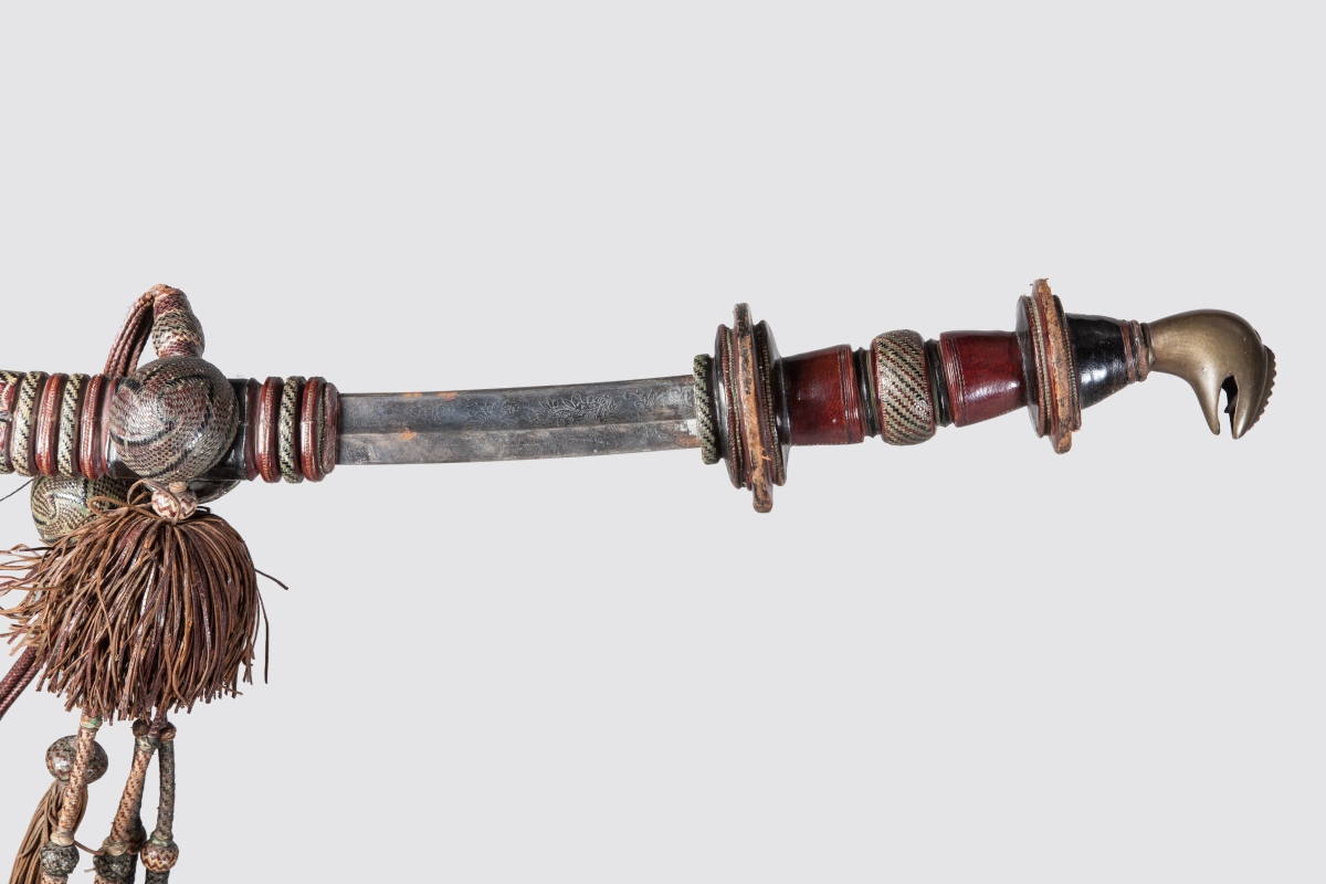 NIGER. SABRE d'apparat à ornementation de cuir tressé polychrome.