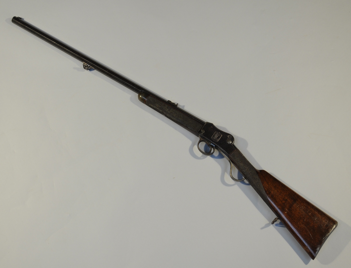 CARABINE TYPE MARTINI HENRY fabrication civile. Canon rayé à pans avec hausse signé au tonnerre "A. Bertin & Charles Jourich 97 rue Richelieu Paris".