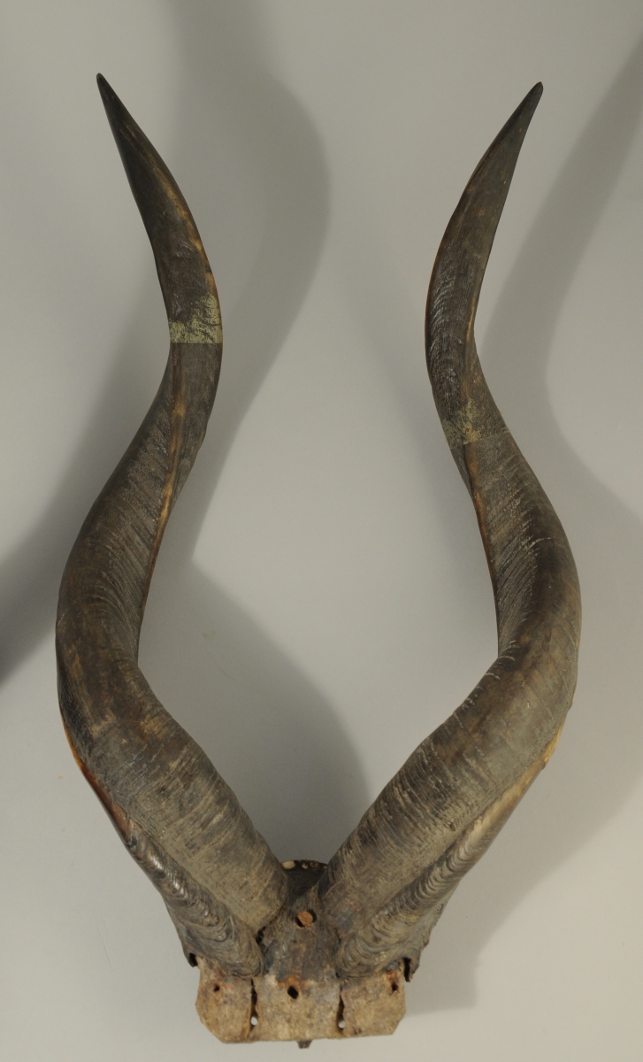 DEUX MASSACRES de SITATUNGA ou GUIB D'EAU. L'un sur un écusson rectangulaire en bois mouluré.