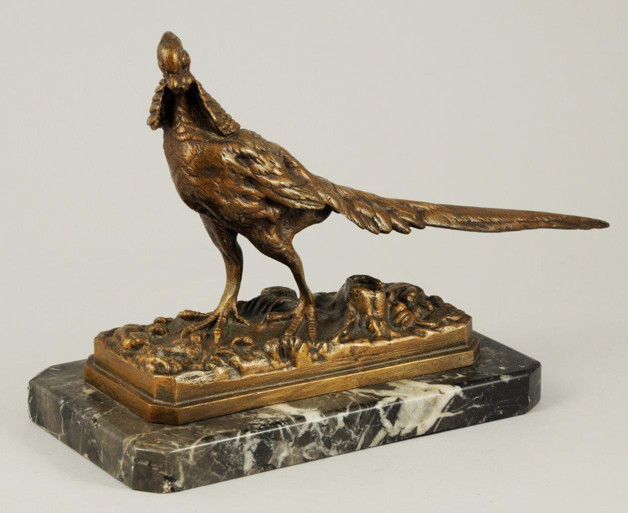 Bronze patiné. Socle de marbre gris Sainte-Anne de forme rectangulaire à pans coupés.