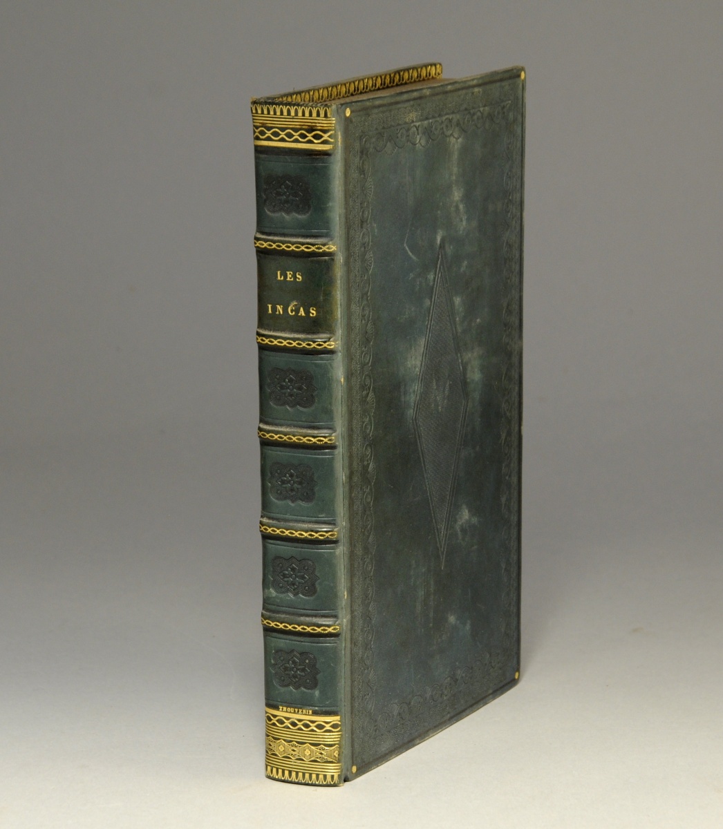 In-8, plein veau vert-bouteille ; fines roulettes d'encadrement et large décor central à fond criblé frappés à froid ; petit fer floral doré dans les angles ; dos à nerfs ornés d'une roulette à chaud ; décor à froid dans les entre-nerfs ; décor à chaud en tête et en queue ; roulette intérieure à chaud, à décor de palmettes. Toutes tranches dorées. Reliure du temps signée Thouvenin. Joseph Thouvenin dit Thouvenin l'Aîné (1790-1834), fut l'un des meilleurs relieurs de la Restauration. Trois charmants hors-texte dessinés par Desenne.