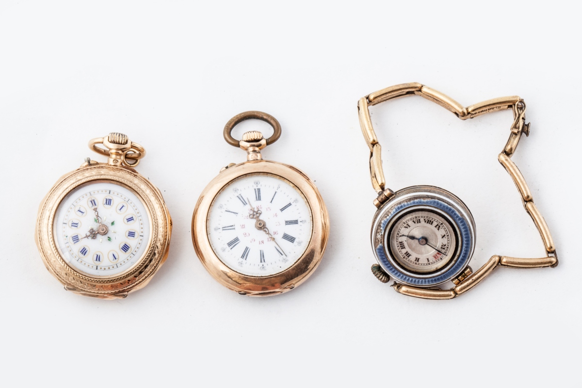 - MONTRE DE COL à remontoir en or jaune, de forme circulaire. Le cadran émaillé avec les heures en chiffres romains, gradué pour les minutes et marqués en chiffres arabes pour chaque période de 5 minute. La boite en or uni. Diam. 30 mm. Poids brut: 20,7 g.