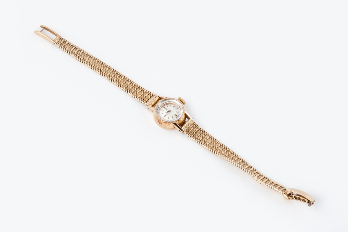 MONTRE BRACELET de dame en or jaune la lunette de forme ronde, graduée pour les heures. Le bracelet en or jaune souple;