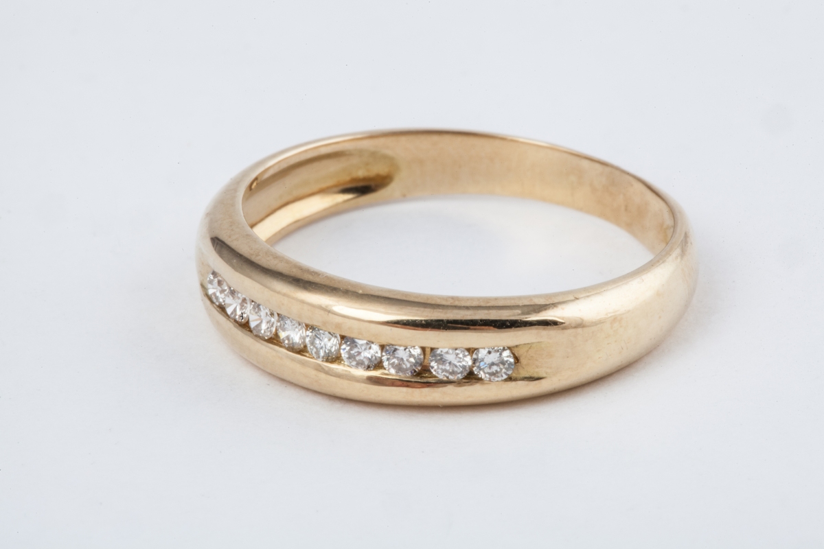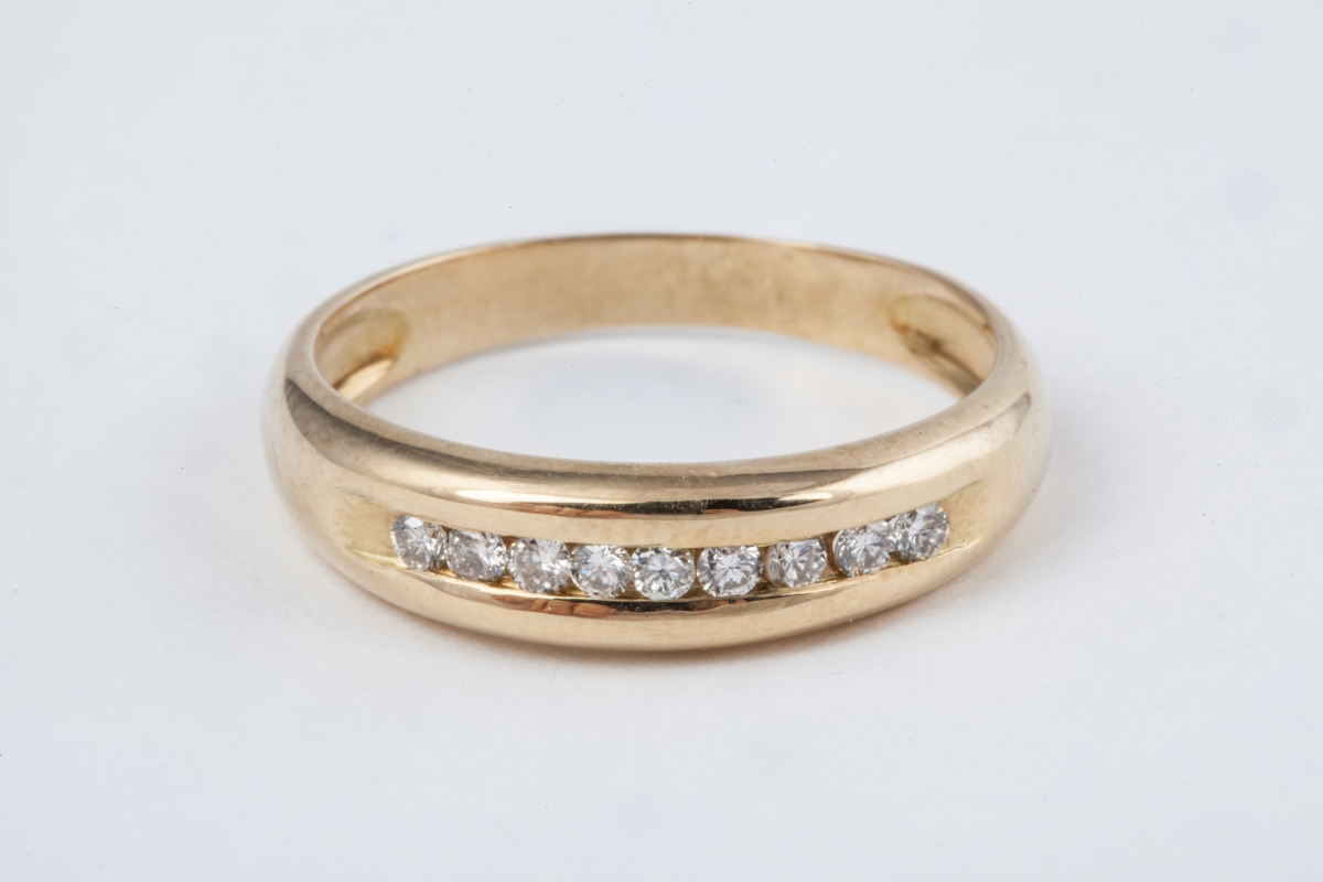 BAGUE rivière en or jaune sertie de neuf diamants ronds.