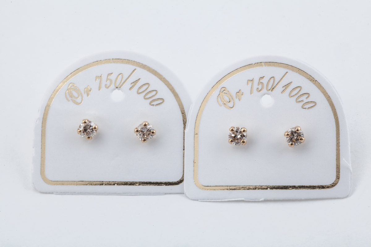 Lot de DEUX PAIRES DE BOUTONS D'OREILLES en or jaune serties de petits diamants ronds.