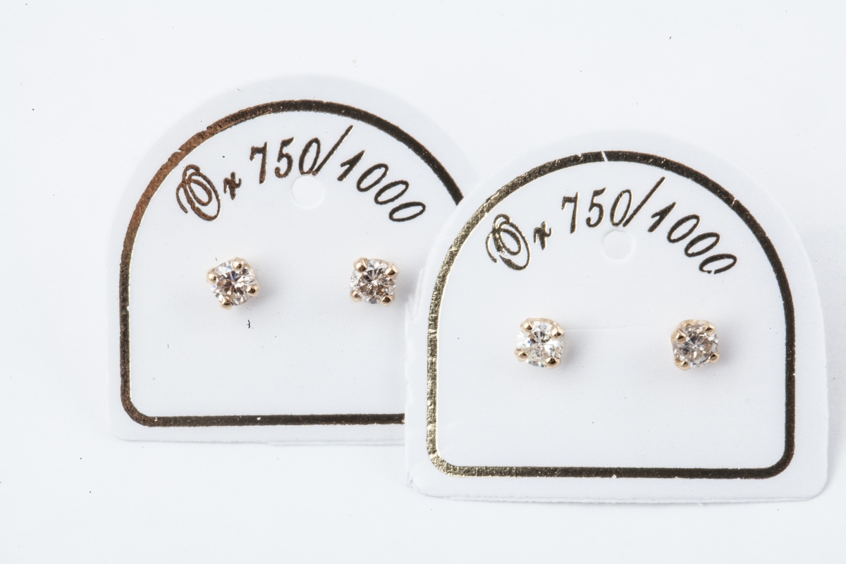 Lot comprenant DEUX PAIRES DE BOUTONS D'OREILLES en or jaune, serties de petits brillants.