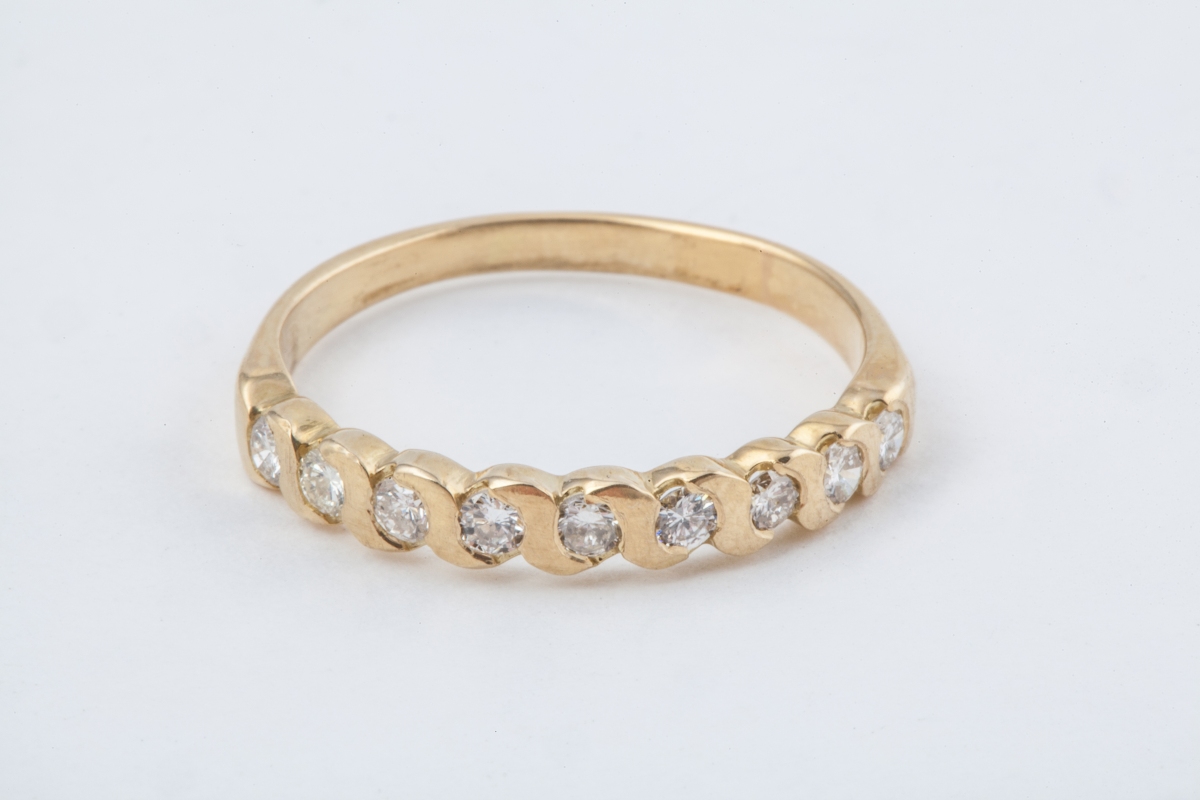 BAGUE en or jaune sertie d'une ligne de neuf brillants.