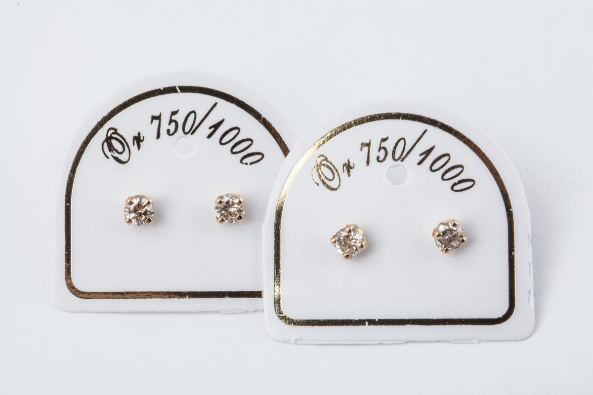 Lot comprenant DEUX PAIRES DE BOUTONS D'OREILLES en or jaune, serties de petits brillants.