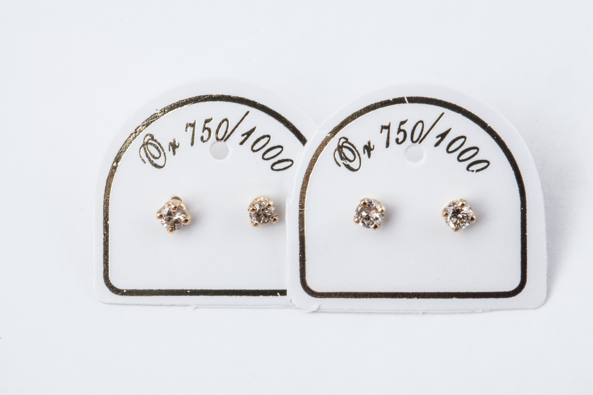 Lot comprenant DEUX PAIRES DE BOUTONS D'OREILLES en or jaune, serties de petits brillants.