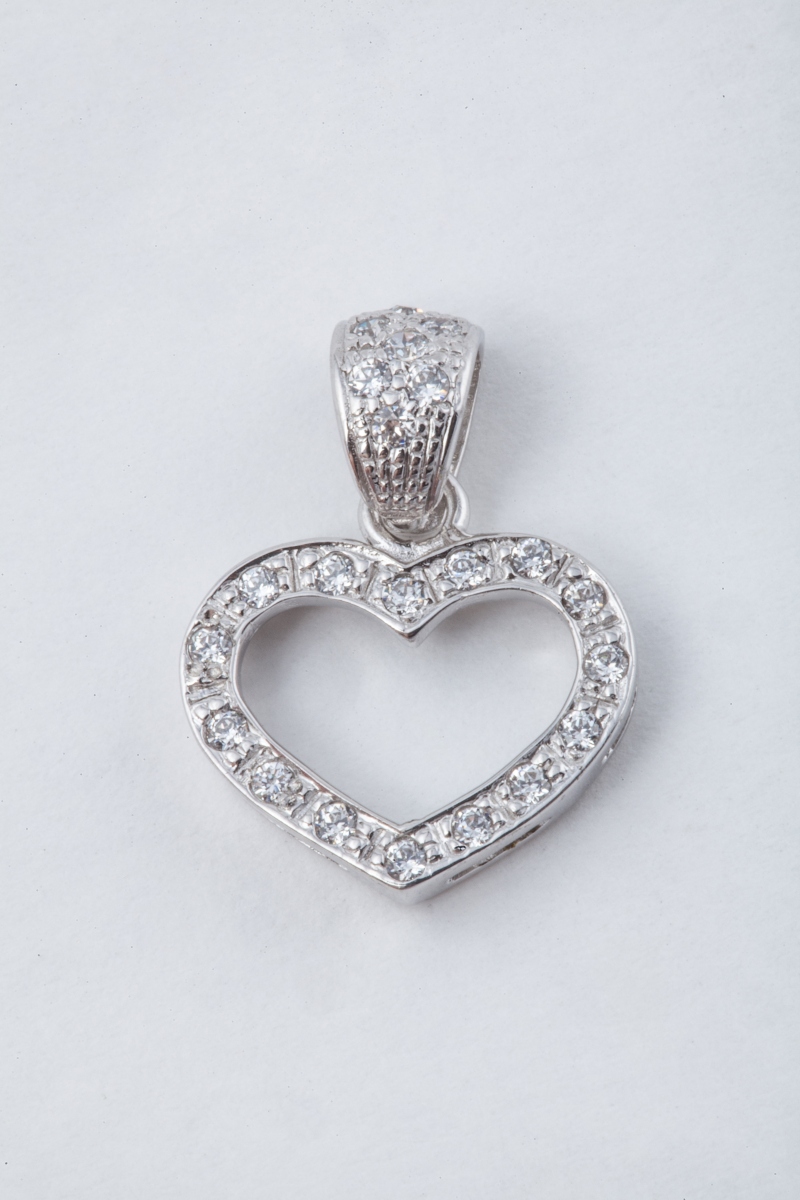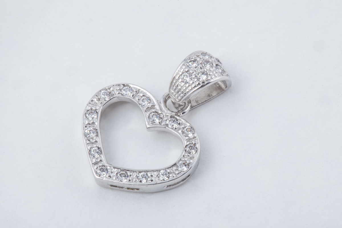 PENDENTIF "coeur" en or gris serti de pierres de synthèse blanches.