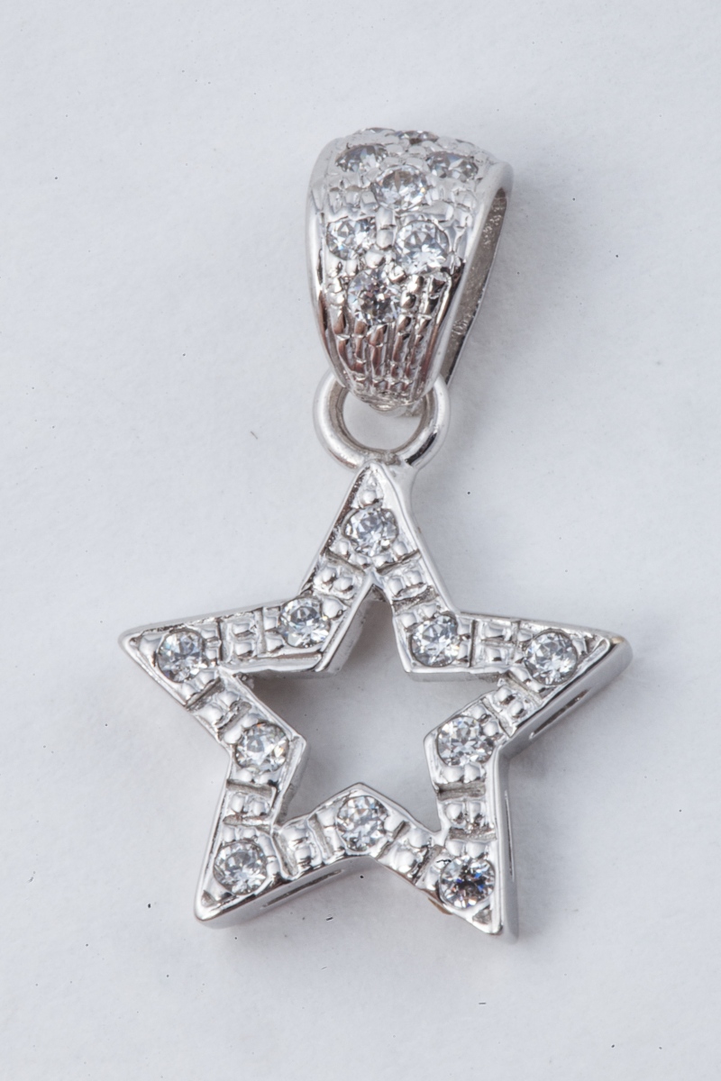 PENDENTIF "étoile" en or gris serti de pierres de synthèse blanches.