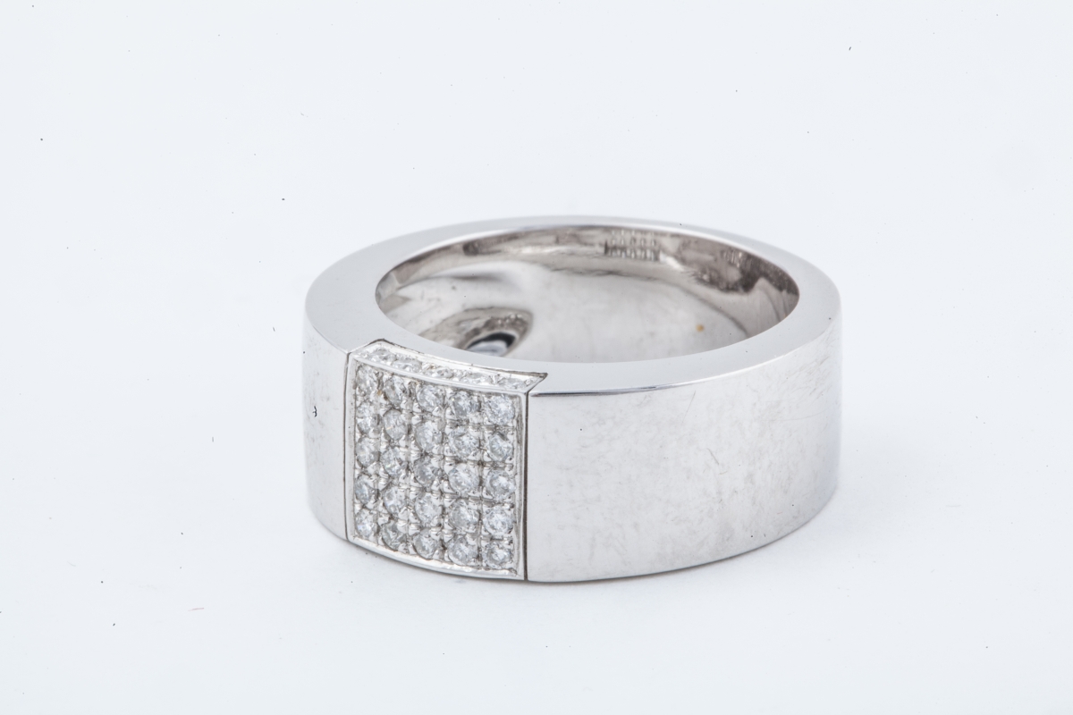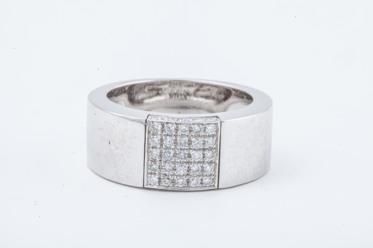 BAGUE bandeau en or gris ornée d'un pavage de brillants.