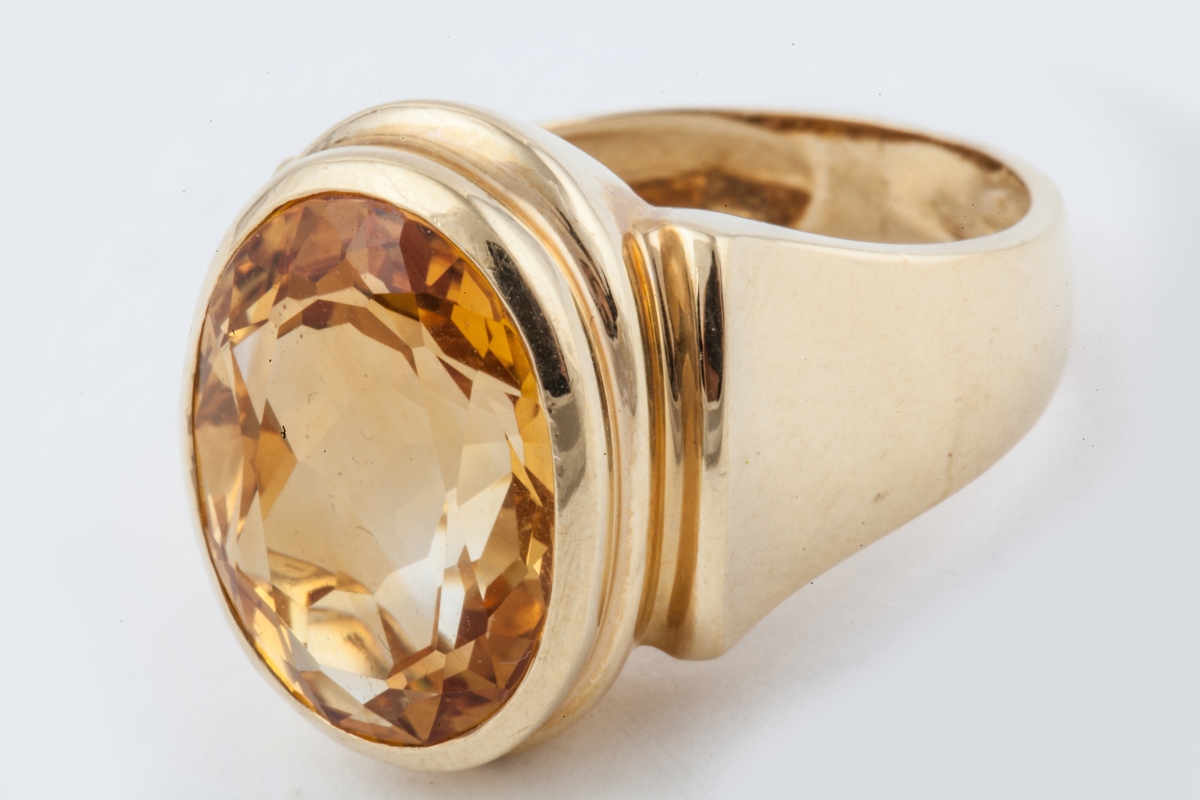 BAGUE en or jaune ornée d'une citrine ovale sertie clos.Tour de doigt: 54Poids brut: 12 g