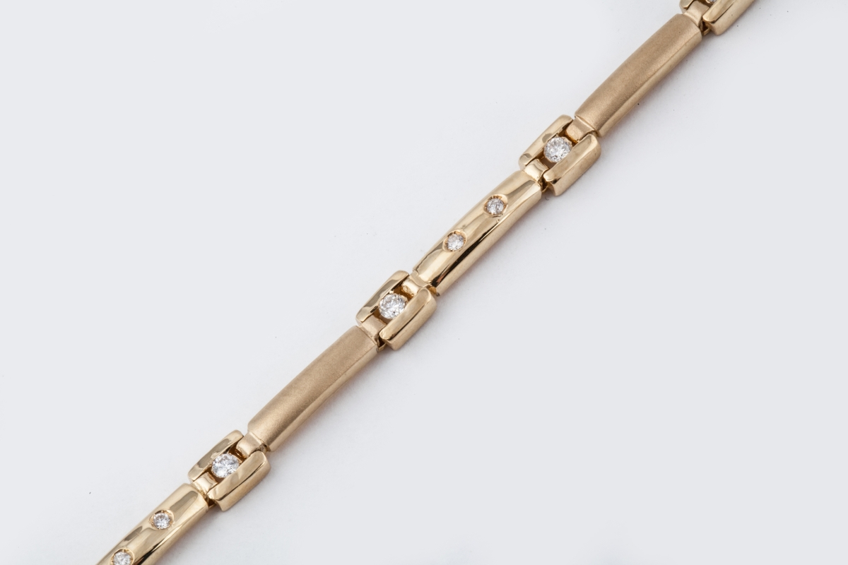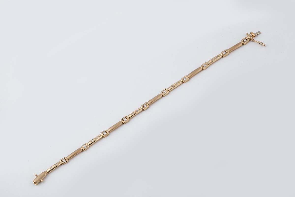 BRACELET articulé en or jaune, les maillons de forme rectangulaire partiellement sertis de petits diamants ronds.