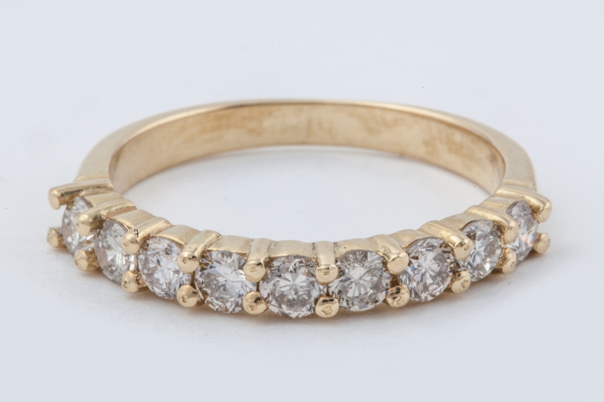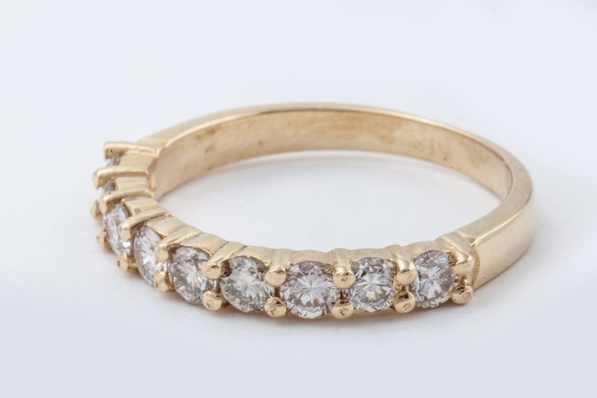 BAGUE rivière en or jaune, sertie d'une ligne de neuf diamants ronds.