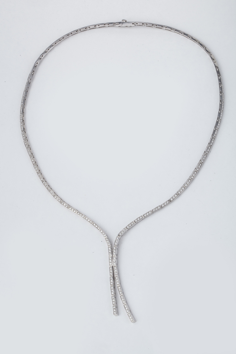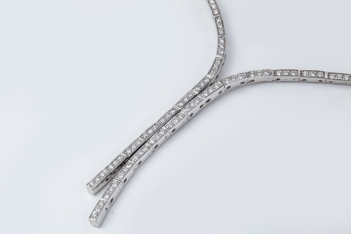 COLLIER articulé en or gris, serti de diamants ronds en ligne.