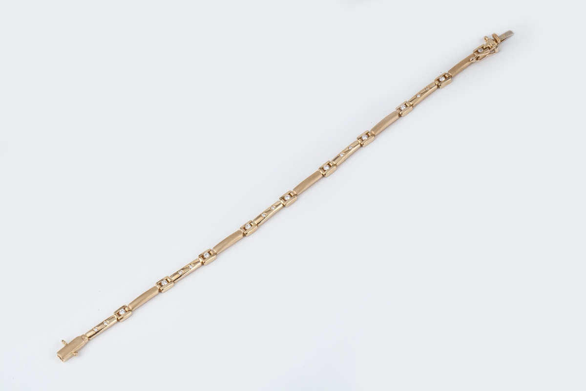 BRACELET articulé en or jaune partiellement serti de diamants.