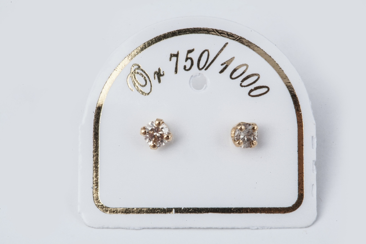 Paire de BOUTONS d'OREILLE en or jaune, sertie de brillants.